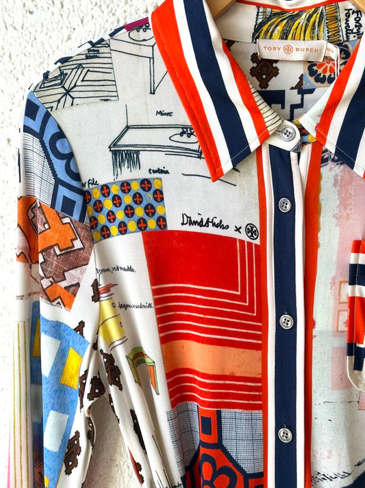 NEW Tory Burch 'Laurence Shirtdress' scrapbook print dress