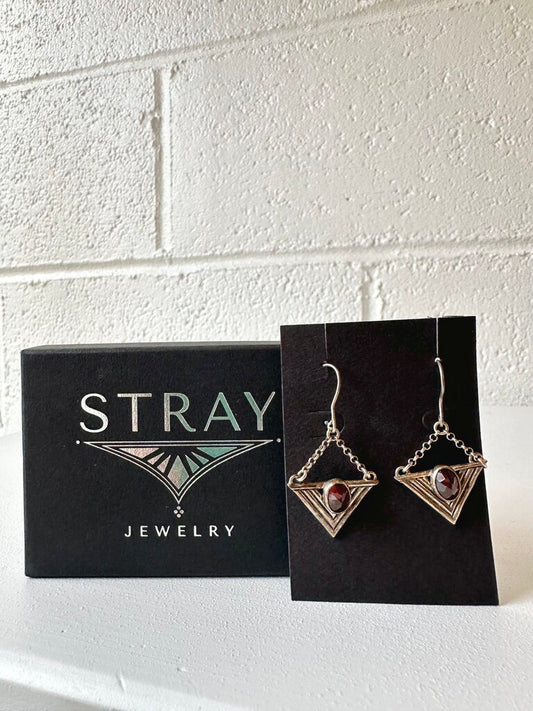 Stray 'Garnet Trinity' sterling silver dangle earrings