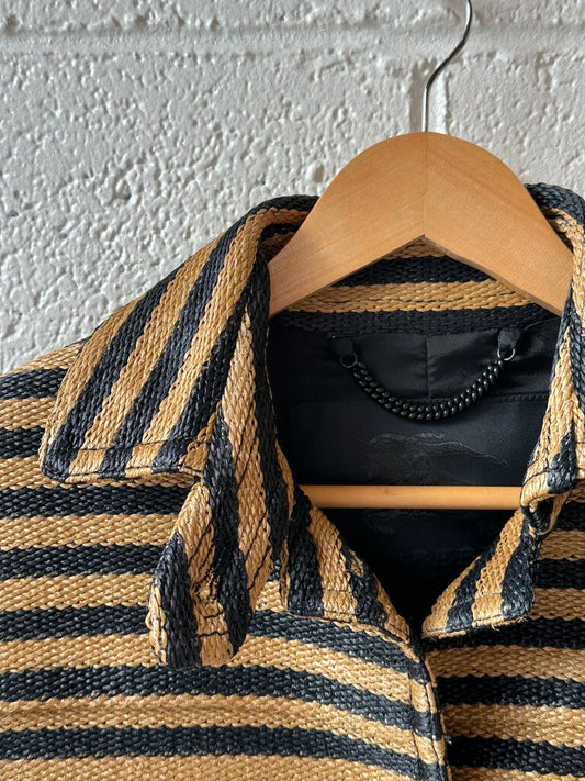 Burberry Prorsum striped woven raffia coat