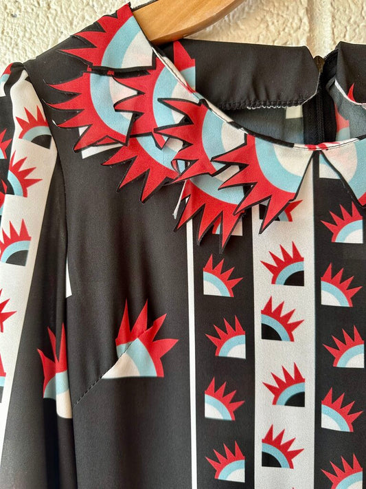 One Imaginary Gril Geometric Print Collared Long Sleeve Dress