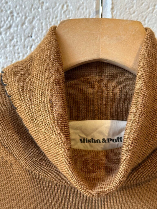Misha & Puff picot edge turtleneck puff sleeve top