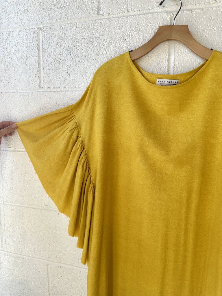 ruffle sleeve midi dress